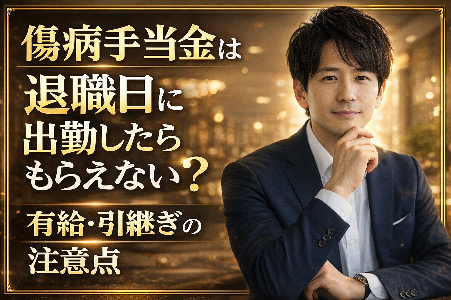 • この記事は、傷病手当金を退職後も受けたいあなた向けに、退職日の出勤、有給、引継ぎ、待期3日、失業保険との関係を退職前後の実務として整理したものです。