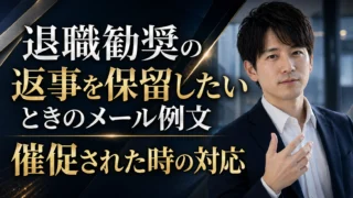 退職勧奨を保留した後、会社へどう返事すればよいか迷う人へ。退職に同意したと誤解されにくいメール例文、催促された時の返信、条件確認、避けたいNG表現を解説します。